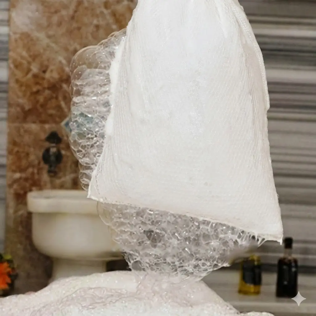 Шелковая рукавица Кесе средней жесткости для деликатного пилинга.